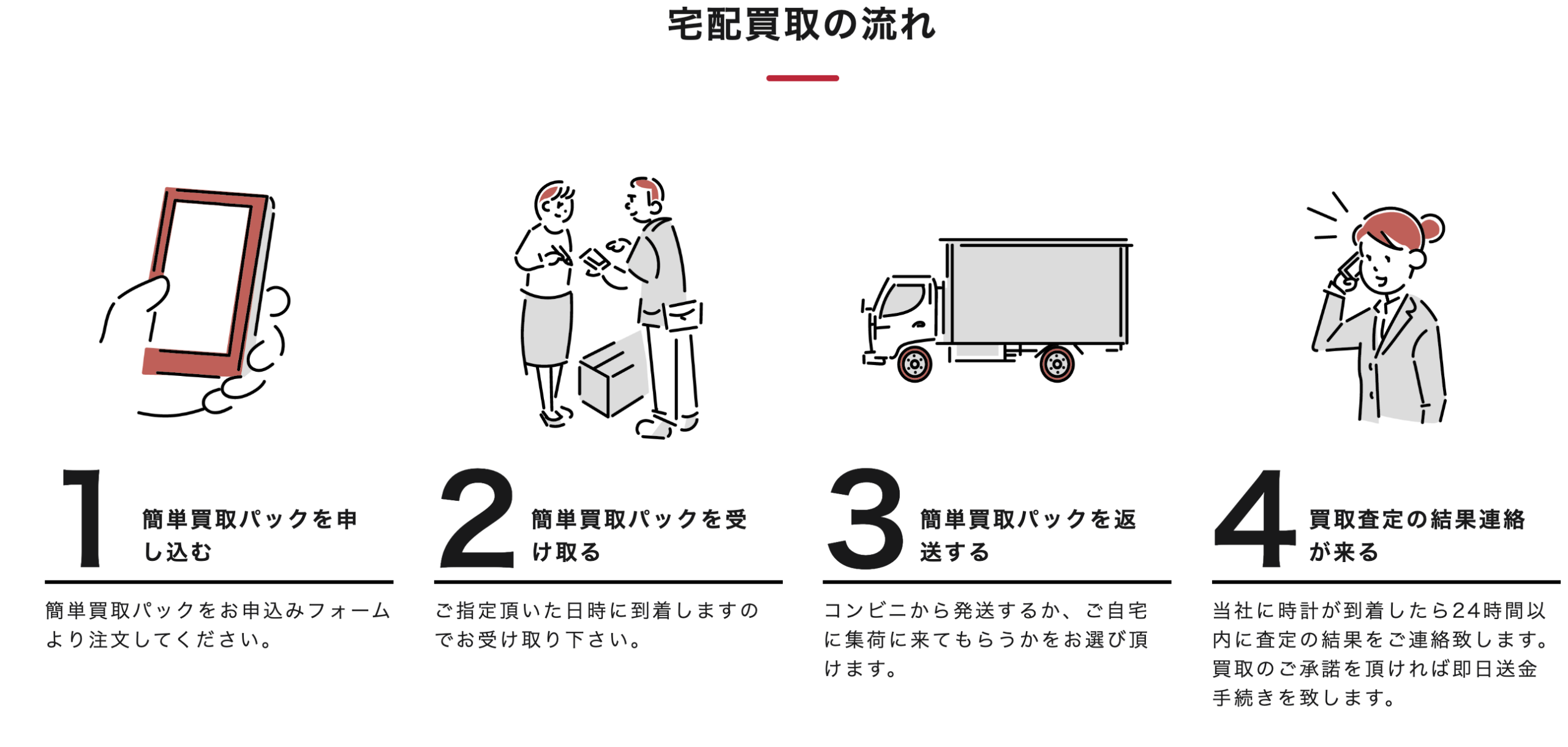 本サービスの最大の特長は、時計ジャンルに特化している点です。ブランド時計の市場価格は日々変動していますが、専門スタッフが最新相場を踏まえて査定を行うため、適正かつ納得感のある金額提示が期待できます。