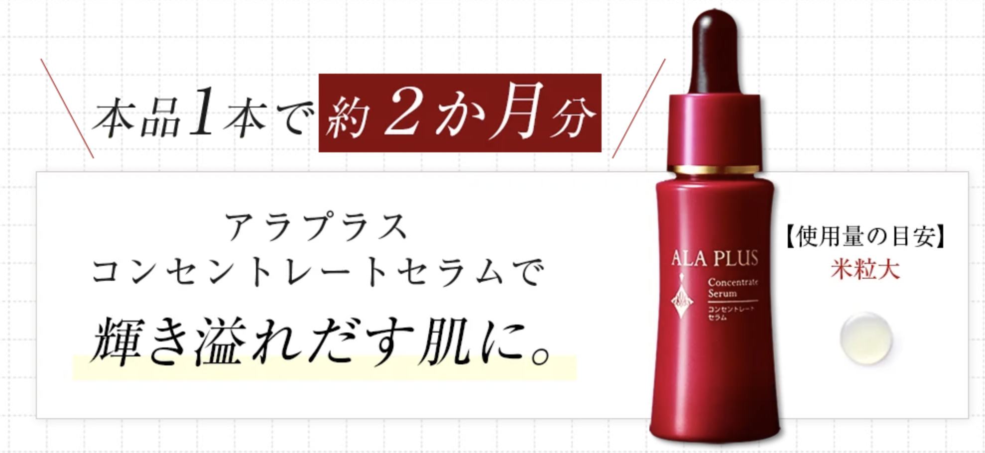 そんな中で注目されているのが「アラプラス コンセントレートセラム」です。年齢肌にアプローチするために開発された美容液で、ハリやうるおいを意識したケアを取り入れたい方に選ばれています。