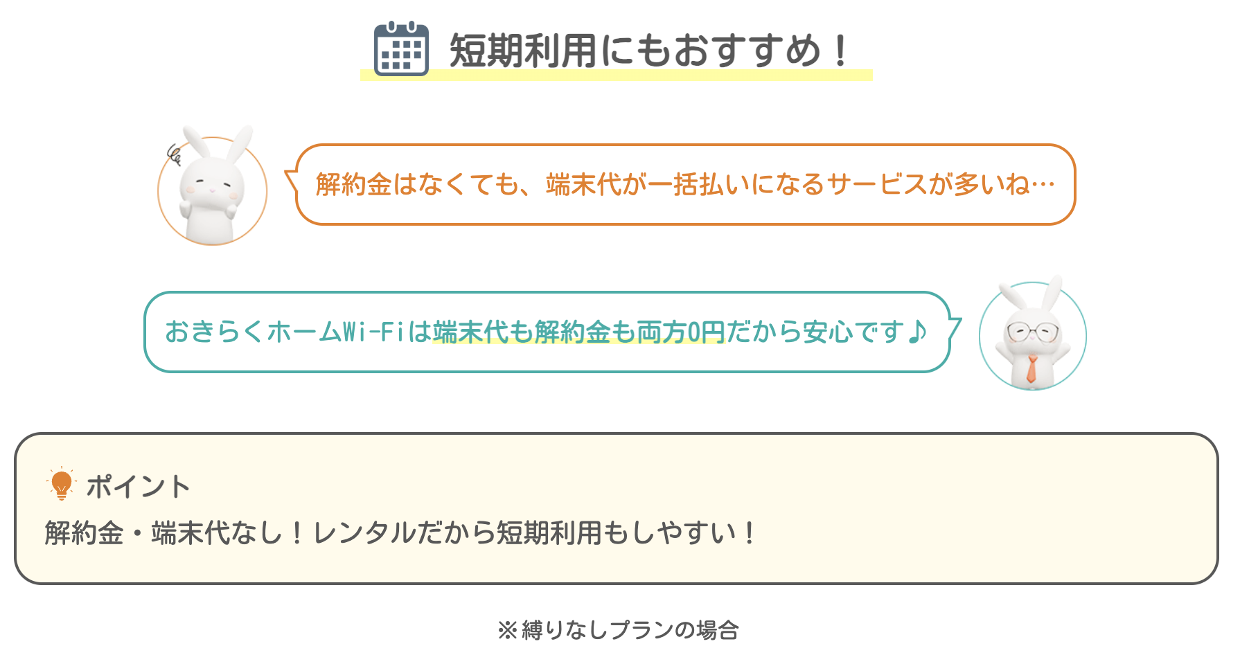 以下のような方におきらくホームWi-Fiは適しています。