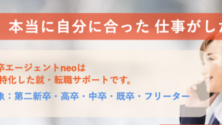 エージェントneo 未経験からの就職・転職をサポート 第二新卒エージェントneoの特徴と利用メリット 第二新卒エージェントneoとは第二新卒エージェントneoは、第二新卒・既卒・フリーター・高卒・中退など、社会人経験が少ない方や未経験からの就職を目指す方を対象とした就職・転職支援サービスです。一般的な転職サービスでは経験者が有利になりやすい... 2026.03.06 エージェントneo